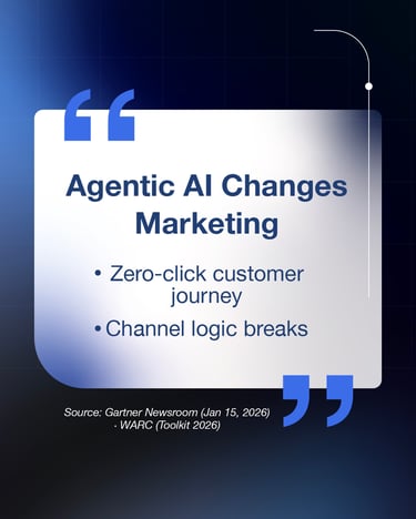 The Constellation take: as agents answer, recommend, and act on behalf of users, discovery and conversion will happen inside conversational + multimodal environments—often without the “click path” marketers have relied on. That’s why channel logic breaks: performance will depend less on isolated channels and more on integrated experience design and governance.