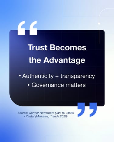 Kantar’s 2026 trends reinforce that the next advantage won’t come from chasing tools—it will come from earning trust through responsible data practices, consistency, and clarity on what a brand stands for.