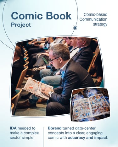 To help IDA communicate technical concepts to a wider audience while maintaining precision, bbrand adopted a creative approach: a comic book designed to simplify data center themes through storytelling.