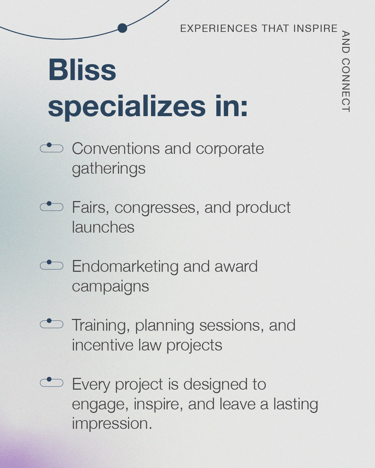Bliss has consolidated itself as one of the reference agencies in the region. With 20 years of expertise, their portfolio ranges from conventions, conferences, and product launches to endomarketing programs, recognition campaigns, training sessions, and projects supported by Brazil’s Incentive Law. Each project reflects their capacity to design stories that inspire, engage, and generate lasting impact.