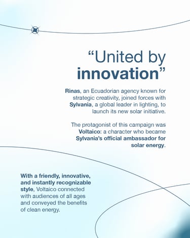 From Quito, Ecuador, Constellation member agency Rinas led an innovative campaign to launch the new solar energy product line of Sylvania. Under the creative direction of Pedro Ortiz, the team developed a strategic concept that blended branding, innovation, and sustainability.