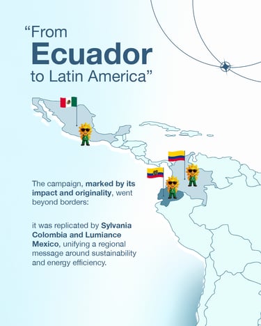 The impact of the campaign quickly crossed borders. Thanks to its creative strength and market results, the initiative was adopted by Sylvania Colombia and Lumiance Mexico, extending the same message across the region with a focus on clean energy and efficiency.