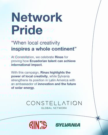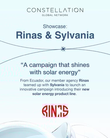 From Ecuador, Rinas developed an innovative solar energy campaign for Sylvania that was later adopted in Colombia and Mexico, unifying a regional message around sustainability and innovation. At Constellation, we celebrate this achievement as a clear example of the international reach that independent agencies within our network can generate.